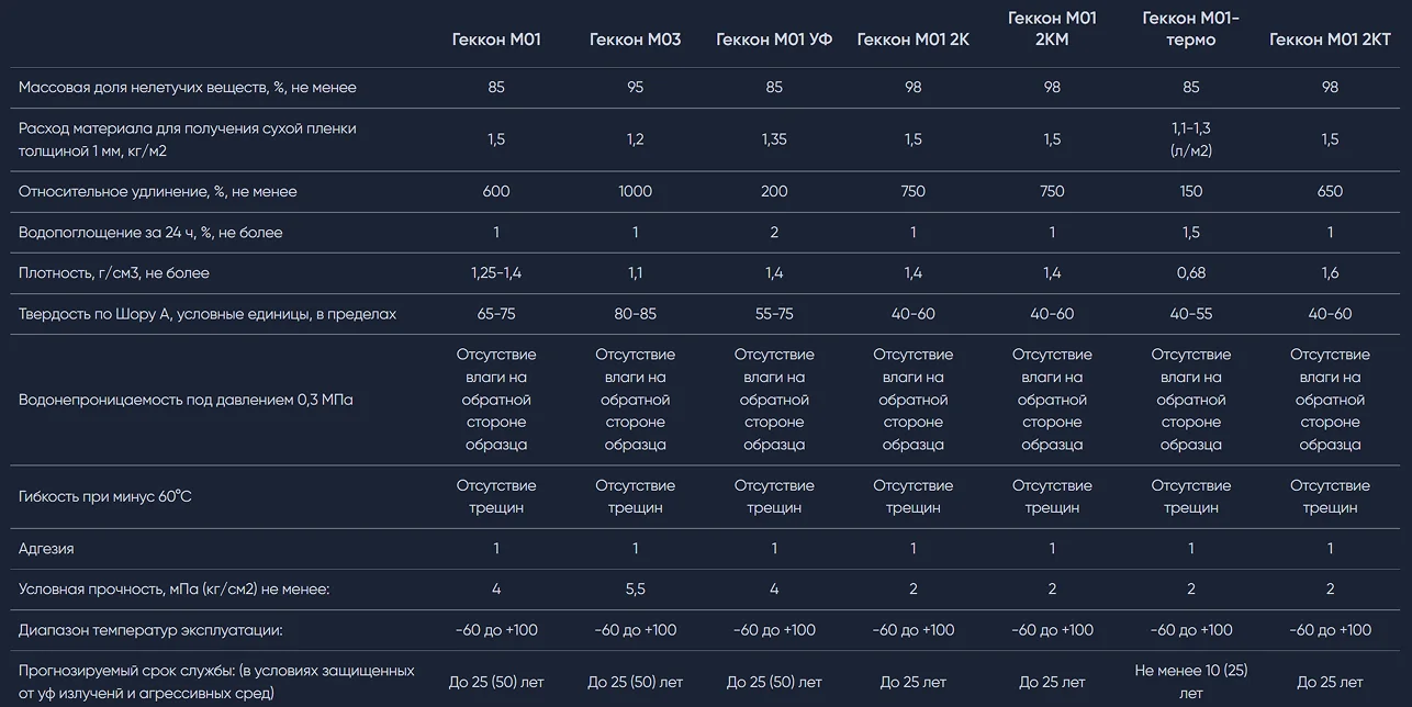 В процессе эксплуатации мастика сохраняет свою структуру и эластичность, что позволяет ей компенсировать подвижки и деформации строительных материалов без нарушения целостности слоя. Благодаря высокой адгезии мастика прочно сцепляется с бетоном, металлом, деревом, стеклом и пластиком, обеспечивая надежную и долговечную защиту.